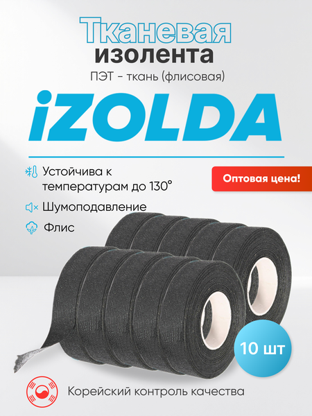 Изолирующая лента (изолента) тканевая, подходит для всех видов электромонтажных работ, как для бытовых нужд так и для изоляции автомобильной проводки. Придает Автомобильной проводке штатный вид, устраняет скрип и стук проводки и различного оборудования в автомобиле. Материал основы - ПЭТ ткань Цвет - черный Размер - 19 миллиметров на 15 метров