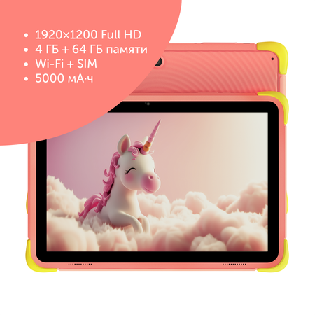 Планшет для детей Vitumi — надёжный помощник в учёбе и развлечениях. Благодаря мощному 8-ядерному процессору Unisoc T606 планшет стабильно работает во время игр или просмотра видео. Яркий IPS-дисплей с разрешением 1920х1200 Full HD передаёт чёткое и насыщенное изображение. Два динамика создают объёмный и громкий звук — на детском планшете удобно смотреть мультфильмы, слушать музыку и общаться по видеосвязи. Планшет Витуми с мощным аккумулятором 5000 мА*ч долго работает без подзарядки. Можно поставить SIM-карту, чтобы играть или смотреть мультики и видео везде: дома, на прогулке или в дороге. Защищённый планшет с усиленным корпусом и прорезиненными углами выдержит случайные удары и падения. Благодаря покрытию soft touch планшет не скользит в руках и приятен на ощупь. Нежный розовый корпус планшета для девочек радует и дарит чувство комфорта. В комплекте есть универсальная подставка — устройство можно поставить рядом и включить любимый мультик за обедом или во время игры. Объём оперативной памяти — 4 ГБ, а встроенной — 64 ГБ. Этого хватит, чтобы скачать все приложения и играть в любимые игры. Если потребуется больше пространства для важных фото и видео, можно установить microSD и добавить до 128 ГБ памяти.