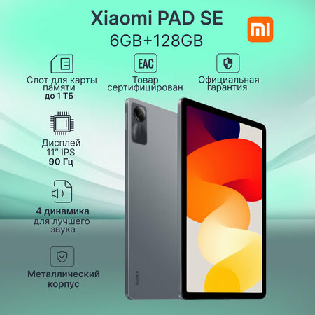 СИМ карта В планшет НЕ вставляется, только Wi-Fi. Планшет Xiaomi Redmi Pad SE - это новое устройство от известной китайской компании, которое может похвастаться стильным дизайном, высокой производительностью и отличным экраном. Он оснащен 11-дюймовым дисплеем с разрешением 1200 x 2000 пикселей и яркостью 400 нит. Благодаря этому, вы сможете наслаждаться четкой и яркой картинкой при просмотре видео, чтении книг или работе с документами. Одним из главных преимуществ Xiaomi Redmi Pad SE является его высокая производительность. Он работает на процессоре Qualcomm Snapdragon 680 и имеет 6 ГБ оперативной памяти, что позволяет запускать даже самые требовательные приложения и игры без задержек. Кроме того, он оснащен 128 ГБ встроенной памяти, которую можно расширить до 1 ТБ с помощью карты microSD. Одной из особенностей Xiaomi Redmi Pad SE является поддержка Wi-Fi 6, которая обеспечивает более быстрое и стабильное подключение к Интернету. Еще одним преимуществом Xiaomi Redmi Pad SE является его стильный дизайн. Он имеет тонкий корпус из алюминия, который легко помещается в руке. Благодаря компактным размерам и легкому весу, этот планшет можно брать с собой куда угодно. В целом, Xiaomi Redmi Pad SE - отличный выбор для тех, кто ищет мощный и производительный планшет с отличным экраном и поддержкой Wi-Fi 6. Он также имеет стильный дизайн и компактный корпус, что делает его идеальным для использования в повседневной жизни. Процессор - Snapdragon 680 (8 ядер), 2.4 ГГц. Бренд процессора - Qualcomm. Модель процессора - Snapdragon 680. Число ядер процессора- 8. Частота процессора, ГГц- 2.4. Бренд графического процессора - Qualcomm. Видеопроцессор - Adreno 610. Оперативная память - 6 ГБ. Беспроводные интерфейсы- Wi-Fi, Bluetooth. Модуль связи- Bluetooth 5,0. Модуль связи -WiF i802.11ac, 802.11b/g/n. Навигация - Нет. Вес товара, г- 478. Размеры, мм - 255.53 x 167.08 x 7.36. Разъемы - USB Type-C, 3.5 мм. Назначение слотов - microSD. Тип карты памяти - microSD, microSDHC, microSDXC. Макс. объем карты памяти, ГБ - 1024. Особенности - USB On-The-Go (OTG), Стереодинамики, Встроенный микрофон. Разрешение основной камеры, Мпикс- 8. Разрешение фронтальной (селфи) камеры, Мпикс - 5. Емкость аккумулятора, мАч - 8000. Диагональ экрана, дюймы - 11 Разрешение экрана -1920x1200. Технология матрицы - IPS. Плотность пикселей, ppi - 207. Операционная систем - Android. Версия Android -Android 13. x. Модуль сотовой связи- Нет. Основной материал корпуса- Металл. Защита от влаги - Нет Работа в режиме телефона - Нет. Встроенная память, ГБ - 128. Комплектация: Планшет. Документация . Зарядное устройство . Кабель USB-C.