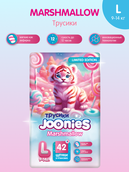 Трусики JOONIES "Marshmallow" - это впитывающие подгузники, разработанные специально для малышей весом от 6 до 11 кг. Они обеспечивают комфорт и безопасность вашему ребенку, благодаря своим уникальным свойствам и высококачественным материалам. Трусики выполнены в белом цвете и имеют мягкую, нежную текстуру, напоминающую зефир. Это делает их приятными на ощупь и удобными для ношения. Одной из особенностей этих подгузников является их способность удерживать влагу. Благодаря использованию инновационного супер абсорбента и современных технологий, трусики обеспечивают сухость до 12 часов. Трусики JOONIES "Marshmallow" изготовлены из дышащих материалов, что позволяет коже малыша дышать и предотвращает появление раздражений. Выбирая эти подгузники, вы делаете ставку на комфорт, безопасность и заботу о здоровье вашего ребенка.