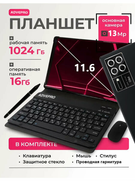 11.6'PAD15PRO Планшет с клавиатурой андроид 16+1TB, для учебы и работы, мощный Планшет оснащен 11.6-дюймовым экраном с разрешением 3000x1440 пикселей, что обеспечивает комфортное использование и позволяет с легкостью просматривать веб-страницы, читать книги и смотреть видео. Планшет работает на операционной системе Android, что открывает доступ к огромному количеству приложений и игр, а также позволяет легко и быстро находить нужную информацию. Объем встроенной памяти составляет 1024 ГБ, что позволяет хранить большое количество данных, включая фотографии, видео, музыку и документы. Планшет имеет возможность подключения клавиатуры, что значительно расширяет его функциональность и делает использование устройства еще более удобным. Планшет с клавиатурой станет отличным выбором для тех, кто ценит комфорт, функциональность и мобильность.