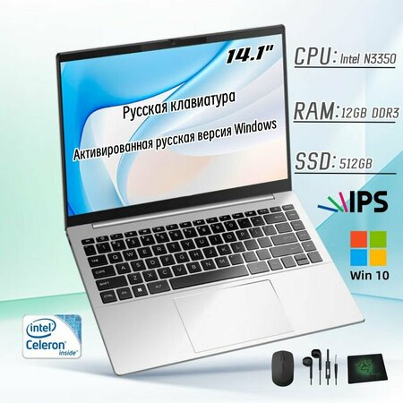 Информация о продукте: Размеры: 14.1 дюймов IPS Экран Разрешение экрана: 1366*768 Оперативная память: 8 ГБ/12 ГБ/16 ГБ Емкость жесткого диска(SSD): 128 ГБ/256 ГБ/512 ГБ/1024 ГБ Операционная система: Windows 10 Pro Чип процессора: Intel Celeron N3350 Основная Частота процессора: 1.1 (ГГц) Видеокарта: Intel UHD IPS Размер: 329*220*16,6 мм (Ш х Г х В) Язык клавиатуры: Русская клавиатура Быстрый и стильный ноутбук. подойдет, когда нужен ноутбук с классным внешним видом за небольшие деньги. Работает от батарейки почти весь рабочий день. Этот ноутбук оснащен сверхбольшим жестким диском SSD 128 ГБ/SSD 256 ГБ/SSD 512 ГБ/SSD 1024 ГБ. Рабочая поверхность с русским языком. Поставляется с Windows. Список упаковки: 1 * 14.1" ноутбук + 1 * адаптер питания + 1 * мышь + коврики для мыши + руководство пользователя