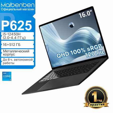 Ноутбук Maibenben P625 - это мощный и функциональный инструмент для работы и развлечений. Процессор Intel Core i5-12450H с 8 ядрами и частотой обновления экрана 120 Гц обеспечивает плавную и быструю работу, а 16 ГБ оперативной памяти и общий объем накопителей SSD 512 ГБ позволяют хранить большое количество данных и приложений. 16-дюймовый IPS-дисплей с разрешением 2560x1600 пикселей и соотношением сторон 16:10 обеспечивает четкое и яркое изображение. Матрица экрана поддерживает sRGB 100%, гарантируя точность цветопередачи. Встроенная видеокарта Intel UHD Graphics обеспечивает качественное и плавное воспроизведение видео и графики. Компактные размеры (246.5x17.8x1.65 см) и легкий вес (1.65 кг) делают ноутбук удобным для переноски и использования в дороге. Беспроводные интерфейсы Bluetooth и Wi-Fi, а также порты USB 3.1 Type A, USB 3.1 Type-С, HDMI, микрофон/наушники Combo обеспечивают широкие возможности подключения. Ноутбук работает на операционной системе Linux, обеспечивая безопасность и стабильность работы. Емкость аккумулятора составляет 70 Вт*ч, что позволяет работать без подзарядки до 5 часов. В комплекте с ноутбуком идет чехол для переноски и адаптер питания.