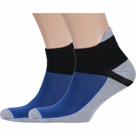 Комплект носков унисекс из 2 пар, круглогодичные, короткие, цвет серо-синие, спортивные, в сеточку, состав: 80% хлопок, 18% полиамид, 2% эластан, арт. 2-А216. Производитель «ООО Альтаир, г. Орск, Оренбургская обл, Россия» под брендом «Альтаир».