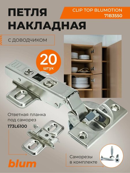 100% Оригинал из Австрии, не Китай. Лучшие петли по лучшей цене. Выберите нужно Вам количество. Мебельные петли Blum 71B3550 — идеальное решение для современных кухонь, шкафов и другой мебели. Эти петли сочетают в себе передовые технологии, надежность и эстетику, обеспечивая безупречную функциональность и долговечность. В мебельной петле CLIP top BLUMOTION, благодаря встроенной в чашку системе амортизации BLUMOTION, сконцентрированы инновационная технология, отмеченный международными наградами дизайн и высокий комфорт движения. Минималистичный и элегантный дизайн петель Blum гармонично вписывается в любые интерьеры, подчеркивая стиль и качество мебели. Петли подходят для большинства стандартных мебельных конструкций и легко устанавливаются благодаря интуитивно понятной системе регулировки. Это позволяет быстро и точно настроить положение дверей по высоте, глубине и боковому смещению.