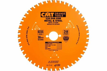 Диск пильный по металлу (235x30x2.2/1.8 мм; Z48; TCG) CMT 226.048.09M предназначен для использования с циркулярными пилами. Производит чистые поперечные пропилы стали, чугуна, железа, труб и листового металла. Зубья диска изготовлены из микрозернистого карбида вольфрама, что гарантирует отличное качество реза и долгий срок службы оснастки. Не рекомендуется применять для пиления алюминия и меди. Максимальная рекомендованная скорость вращения 2 800 об/мин.