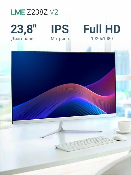 Монитор **23.8' Lime Z238Z V2 White** — это устройство с диагональю экрана 23,8 дюйма (60,5 см), которое подойдёт для работы и развлечений. **Основные характеристики:** * Тип матрицы: IPS. * Разрешение экрана: 1920 x 1080 пикселей. * Входы: VGA, HDMI, DisplayPort. * Аудиовыход: есть. * Разъём для подключения питания: DC. * Время отклика: 4 мс. * Углы обзора (по горизонтали/вертикали): 178°/178°. * Яркость: 250 кд/м². * Статическая контрастность: 1000:1 (100M:1). * Частота обновления: 100 Гц. * Тип панели: плоская. Монитор имеет современный дизайн и может стать отличным выбором для тех, кто ищет качественное и доступное по цене устройство. Он подойдёт как для домашнего использования, так и для офиса.
