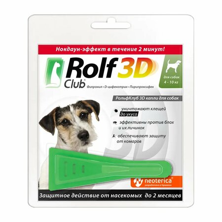 RolfСlub капли от блох и клещей 3D капли для собак 4-10 кг 1 пипетка