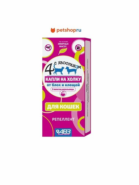 Преимущества Содержат только натуральные репеллентные эфирные масла Надежно защищают от нападения блох и других насекомых до 8 недель, клещей - до 3 недель Приятный аромат эфирных масел маскирует неприятный запах Разрешены котятам с 8-недельного возраста Состав и свойства В качестве зоогигиенических ингредиентов капли содержат эфирные масла эвкалипта, лаванды, цитронеллы и шизандры, а также спирт изопропиловый в качестве вспомогательного компонента. Эфирные масла, входящие в состав капель, обладают выраженным репеллентным действием на вшей, блох, власоедов, иксодовых и саркоптоидных клещей, паразитирующих на кошках. Продолжительность репеллентного действия после однократной обработки животного составляет против иксодовых клещей до 3-х недель, против блох до 8 недель. Показания к применению Капли применяют кошкам для предупреждения нападения блох, вшей, власоедов, комаров, чесоточных и иксодовых клещей. Противопоказания Не подлежат обработке кормящие самки, котята моложе 8 недельного возраста, а также животные с повышенной чувствительностью к компонентам капель. Форма выпуска и комплектация Полимерные пипетки-капельницы по 1 мл для кошек, упакованы по 2 шт. Внешняя упаковка - картонная пачка.