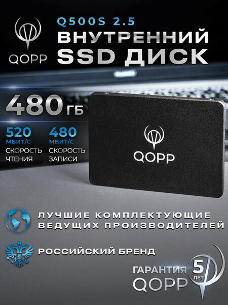 Внутренний SSD-диск QOPP 480 ГБ 2.5 SATA3 6.0 Гбит/с — это современный твердотельный накопитель, который обеспечит высокую скорость работы и мгновенный отклик вашего ПК или ноутбука. Компактная форма и размер накопителя 2.5 SATA идеально подходят для большинства стандартных ноутбуков и стационарных компьютеров. В ассортименте представлен большой выбор моделей с объемом 120 GB, 240 ГБ и 960 ГБ — отличное решение для любых задач и бюджета. Устройство отличается надежным контроллером и качественными комплектующими, что обеспечивает долговечную и стабильную работу без перегрева. Благодаря высокой скорости чтения и записи, вы сможете получить максимальную производительность при работе с тяжелыми файлами и ресурсоемкими программами. Если вы планируете покупку и ищете такие популярные модели, как Kingspec P3-512 , Adata SU650, Samsung 850 EVO 500 GB, Samsung 870 EVO 500 GB, Kingston A400, Patriot Burst 480 GB, SmartBuy Revival 3 480GB, SmartBuy Helix 480 GB, AMD Radeon R5 Series 480 GB, Netac N535S 480 GB, то рассмотрите и нашу модель: SSD QOPP 480 ГБ 2.5 SATA3 6.0 Гбит/с — отличный выбор, который сочетает современные технологии, высокую скорость и доступную цену. Более 25 тысяч довольных пользователей уже оценили продукцию QOPP. Обратите внимание: данный SSD является внутренним и мы не даем гарантию на работу через переходники. В случае приобретения SSD, который не соответствует вашим требованиям по характеристикам, при условии повреждения упаковки, возврат через пункт выдачи невозможен. Если возникнут вопросы или сложности с подключением и оформлением возврата, вы всегда можете обратиться за помощью в нашу техническую поддержку на официальном сайте QOPP — специалисты помогут быстро и качественно решить любую проблему и предоставят необходимую консультацию. Комплектация: диск 2.5 SATA III SSD