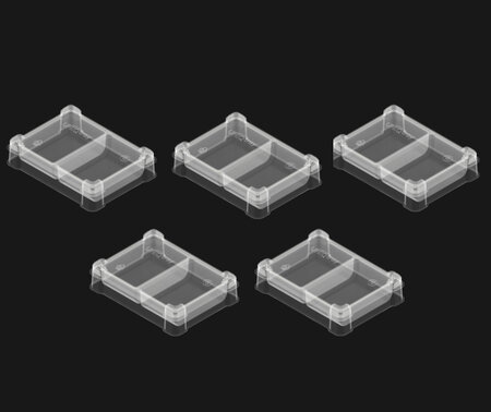 В наборе 5 игронайзеров UTSt2-t. Игронайзеры Meeple House - идеальное решение для хранения ваших настольных игр. Благодаря универсальным модулям, карты, жетоны и все прочие компоненты настольных игр будут готовы к партии в любое время в самом удобном виде! Универсальные модули соединяются друг с другом, чтобы вы были могли разложить компоненты любой настолки. Клей использовать не нужно, так вы можете изменять конструкцию игронайзера сколько угодно и как угодно. Модули сделаны из прочного пластика и накрыты прозрачной крышкой с надёжным замком. Модули подходят под малые компоненты (2 секции).