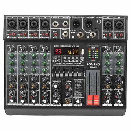 6-канальный микшер 99 эффектов 7-полосный эквалайзер Аудиомикшер USB PC Запись Bluetooth AUX микшерный пульт AM-GT6