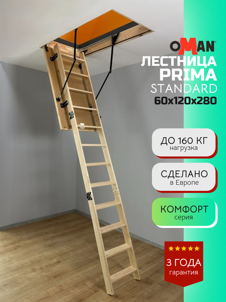 Лидер продаж на маркетплейсах! Чердачные лестницы "Прима Стандарт" - выбор №1 Покупателей (по количеству проданного товара). Узнайте, почему покупатели выбирают нас. ЛЕСТНИЦЫ OMAN ОБЛАДАЮТ ФУНКЦИЕЙ ОТКРЫВАНИЯ ЛЮКА ИЗНУТРИ ПОМЕЩЕНИЯ (С ЧЕРДАКА) БЕРЕЖНО ДОСТАВИМ, ПОДНИМЕМ НА ЭТАЖ И ЗАНЕСЕМ В КВАРТИРУ. И ВСЕ ЭТО БЕСПЛАТНО! ЭКСКЛЮЗИВНЫЙ ПОСТАВЩИК С 2001 ГОДА Лестница чердачная, складная, деревянная, 3-х секционная. Для удобства транспортировки ДВЕ ПОСЛЕДНИЕ СЕКЦИИ РАЗОБРАНЫ. Ступени выполнены из сосны. Термоизоляционная крышка типа "сэндвич", толщиной 26мм (толщина с утеплителем) облицована с двух сторон ДВП древесного цвета. Лестница предназначена для условий, когда чердак утеплен и не требует дополнительной теплоизоляции. Короб деревянный, высотой 135мм. по периметру проходит уплотнитель.