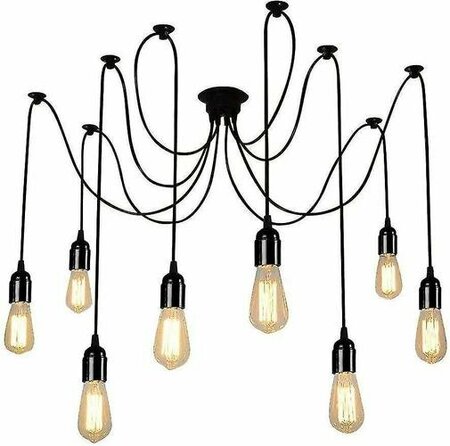 8 ламп паутинная люстра, E27 мультиламповая ретро люстра, подходит для ресторанов, кафе, магазинов одежды. Потрясающий дизайн: наша 8 - ламповая потолочная люстра, с элегантным железным каркасом и черной отделкой, добавляет немного изысканности, улучшает ваше пространство. Широкий спектр применений: эта люстра идеально подходит для кафе, магазинов одежды и ресторанов, создавая удобную и теплую атмосферу. Простота установки: люстра имеет длину линии 1,5 метра и предлагает гибкие варианты установки. Материал: изготовлен из прочного железа с гладкой черной поверхностью. Настраиваемое освещение: вмещает лампочки E27, что позволяет выбрать идеальную яркость и стиль (за исключением лампочек). Описание продукта: Используйте нашу изысканную 8 - ламповую люстру в форме паука, чтобы улучшить атмосферу в вашем ресторане, кафе или магазине одежды. Эта люстра сделана из железа, элегантная черная отделка, которая добавляет след ретро - очарования в любое пространство. Напряжение: 220В цвет: черный размер: линия длиной 1,5 м Материал: Источник света железа: не содержит спецификации лампового сиденья: E27 Содержание упаковки: 1 * люстры (без ламп) Примечание: Размер измеряется вручную, может быть ошибка 0 ~ 1 см, это нормальное явление. Из - за различий в освещении и экране, цвет продукта может немного отличаться от изображения, пожалуйста, поймите.