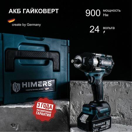 900 Н. М. Ударный бесщеточный гайковерт HIMERS DMT900B аккумуляторный 24V, 2 АКБ по 6 А. ч, 900 Н. м, / Кейс / для закручивания, 24в, квадрат 1/2, мощный