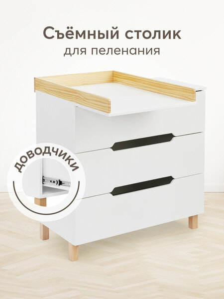 Изготовленный из натурального дерева этот стильный комод с пеленальным столиком FIOKI V2 идеально подойдет для детской комнаты. У него компактные размеры, что позволяет экономить место в небольших помещениях. Деревянный комод прекрасно впишется в интерьер спальни вашего малыша. У комода есть съемный пеленальный столик, который делает процесс пеленания удобным и безопасным как для вас, так и для вашего новорожденного ребенка. У комода предусмотрены большие ящики для удобного хранения одежды и вещей вашего ребенка. Благодаря устойчивой конструкции на ножках, комод обеспечивает безопасность для маленьких детей: он не опрокинется при пеленании новорожденных. Эргономичный дизайн этого детского комода гармонично сочетается с функциональностью и простотой использования. Пеленальная поверхность убирается при необходимости, что делает эту модель универсальной и практичной для каждого родителя. Комод с пеленальным столиком FIOKI V2 – это не просто мебель для спальни вашего ребенка, а целый органайзер для его вещей, одежды и игрушек. Он создан, чтобы облегчить процесс ухода за малышами и добавить радости в повседневную жизнь всех членов семьи.