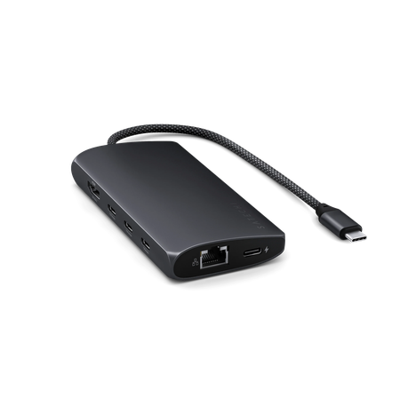 Наслаждайтесь яркими изображениями, насыщенными цветами и сверхбыстрой частотой обновления, созданной для того, чтобы оживить ваш контент. Многопортовый адаптер USB-C 8K with Ethernet V3 поддерживает отображение с высоким разрешением 8K / 30 Гц на совместимых устройствах, а также возможность вывода 4K / 120 Гц / 144 Гц для уменьшения размытости изображения при движении. Его более высокая частота обновления обеспечивает повышенную точность при выполнении таких задач, как игры высокой четкости и профессиональный видеомонтаж, значительно расширяя ваши творческие возможности. Плавный переход от USB-A к полной функциональности USB-C с помощью многопортового адаптера USB-C 8K с поддержкой Ethernet V3. Наши обновленные порты передачи данных USB-C теперь поддерживают новейший стандарт USB 3.2 Gen 2, обеспечивая невероятно высокую скорость передачи данных - до 10 Гбит/с. Независимо от того, передаете ли вы большие файлы, транслируете контент высокой четкости или просто подключаете свои устройства, максимально повысьте эффективность работы благодаря удвоенной скорости обычного подключения по USB-A. Устройство для чтения SD-карт UHS-II способно передавать файлы в три раза быстрее, чем устройство для чтения карт UHS-I, предоставляя вам доступ ко всему содержимому в мгновение ока. Быстро и эффективно заряжайте даже самые мощные устройства с помощью многопортового адаптера USB-C 8K с поддержкой Ethernet V3. Этот мощный адаптер может принимать входную мощность в 100 Вт и выдавать на основное устройство максимум до 85 Вт, обеспечивая совместимость даже с самыми требовательными периферийными устройствами и позволяя ему с легкостью подключать широкий спектр устройств профессионального уровня. Улучшите внешний вид вашего устройства с помощью многопортового адаптера USB-C 8K с поддержкой Ethernet версии 3. Он выполнен из прочного алюминия со скошенными краями, что прекрасно дополняет экосистему Apple. Более тонкий и округлый разъем USB-C обеспечивает лучшее подключение к устройствам в защитных чехлах. Благодаря трем элегантным цветовым решениям - Космический серый, серебристый и Полуночный - это удобный и настраиваемый источник энергии, которого вы так долго ждали. Начните использовать многопортовый адаптер USB-C 8K с поддержкой Ethernet сразу же благодаря простой конструкции "подключи и работай", которая устраняет необходимость в установке дополнительного программного обеспечения или драйверов. Разработанный с учетом современных требований, он универсально совместим с большинством хост-устройств USB-C и основными операционными системами. Тип разъема: