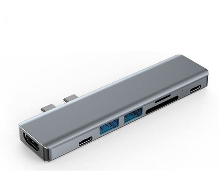 Type-C HUBУниверсальное решение для ноутбука, которое не только поможет расширить возможности работы с другими устройствами, но и станет частью вашего MacBook, избавит от лишних проводов Поддержка быстрой зарядки Вы сможете заряжать ваше устройство и одновременно с использовать все разъемы. Мощность до 87W HDMI 4KРазрешение 4K и 2K доступно при частоте 30 Гц, Full HD - 60 Гц Высокоскоростной порт USB3.0USB3.0 позволяет передавать информацию да 10 раз бsстрее, чем USB2.0