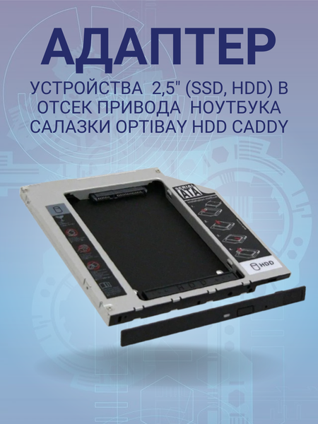 Описание Перед покупкой определите ширину привода вашего ноутбука Для этого извлеките привод ноутбука, и измерьте его ширину как показано на рисунке. Размер дисковода бывает двух видов и отличается по своей толщине – 9,5мм и 12,7мм. Перед покупкой переходника, внимательно измерьте толщину вашего дисковода и только потом покупайте соответствующий адаптер. В противном случае, переходник SSD диска попросту не влезет в ноутбук на место DVD привода.
