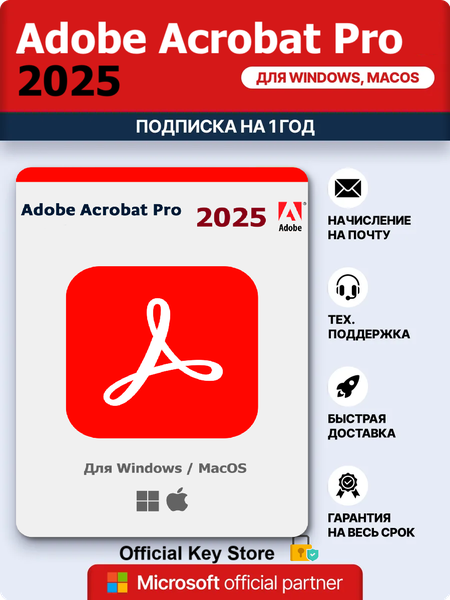 Достоинства:Всё отлично! Очень крутой сервис, всё как доктор прописал, легальная подписка + можно установить Acrobat на ipadOS с AdobeScan. Спасибо за такие адекватные деньги иметь возможность полноценную возможность пользоваться в работе редакторами pdf на Windows и Apple Комментарий:Ожидания оправданы, специально искал, чтобы под windows и apple работала подписка