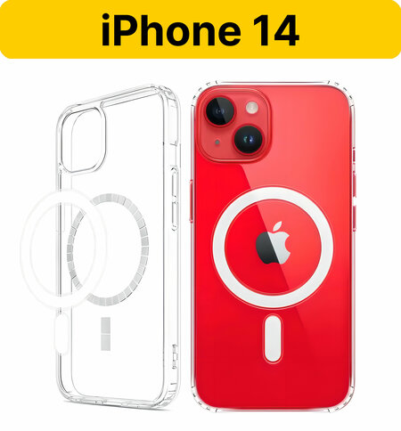Прозрачный чехол для iPhone 14 (Айфон 14) с технологией MagSafe идеально примагничивается к вашему iPhone. Силиконовый чехол MagSafe обеспечивает защиту от ударов и падений, а также позволяет эффективно использовать беспроводную зарядку и многие другие аксессуары MagSafe. Встроенные магниты точно совпадают с магнитами на задней поверхности iPhone. Благодаря идеальному совмещению с устройством чехол надёжно держится, а беспроводная зарядка становится быстрее. Снимать чехол на время зарядки не нужно — просто присоедините зарядное устройство MagSafe или положите iPhone на зарядное устройство стандарта Qi. Перед установкой на телефон обязательно снимите защитную плёнку внутри и снаружи чехла! Важно: данная модель чехла подходит только под iPhone 14! Для iPhone 14 Pro, iPhone 14 Pro Max и iPhone 14 Plus не подходит!