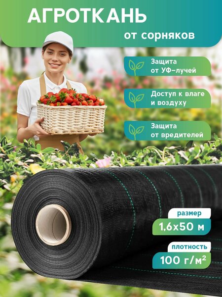 Агроткань от сорняков застилочная для клубники в рулоне 1,6х50 м, 100 г/м2 - 1 шт