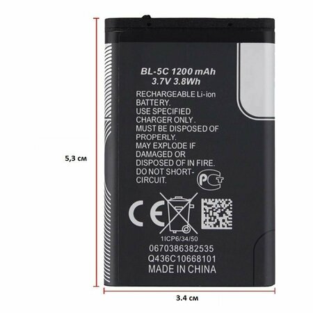 Аккумулятор BL-5C 1200mAh 3.7V подходит для сотовых телефонов, различных моделей портативных колонок, используется в радиоприемниках, так же подходит для онлайн касс Эвотор 7.2 внимание! Перед установкой аккумулятора необходимо удалить с контактов защитную пленку.