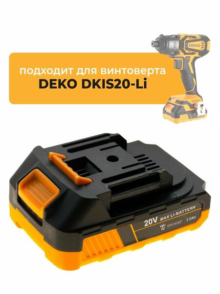 Аккумулятор для ударного винтоверта DEKO DKIS20-Li Аккумулятор DEKO 20V — это высокопроизводительный источник питания для вашего винтоверта deko dkis20 li. Этот акб deko 20v с емкостью 2.0Ah обеспечивает стабильную работу и быструю зарядку. Благодаря технологии Li-ion, DEKO аккумулятор 20V сохраняет свою эффективность даже после многочисленных циклов зарядки. Аккумулятор 20V DEKO специально разработан для такого инструмента, как винтоверт аккумуляторный ударный deko dkis20 li, обеспечивая надежное и мощное выполнение любых задач. Преимущества: - Аккумулятор деко 20В - мощная и долговечная батарея на основе литий-ионной технологии. - Быстрая зарядка и продолжительное время работы для обеспечения максимальной продуктивности. - Подходит для использования с винтовертом deko dkis20 li. Если вы ищете надежное и производительное решение для deko dkis20 li 20в, аккумулятор 20V DEKO — это то, что вам нужно. Закажите аккумулятор для деко 20в сегодня и забудьте о проблемах с питанием инструмента! Подходит для: - Аккумуляторный ударный винтоверт DEKO DKIS20-Li 20В, 1х2.0Ач (063-4391); - Аккумуляторный ударный винтоверт DEKO DKIS20-Li, с быстрозажимным патроном, 20В, 2х2.0Ач, в кейсе (063-4392).