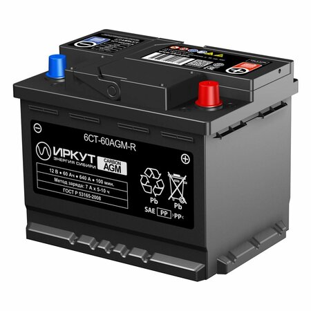 Мощный выносливый надежный авто аккумулятор иркут AGM 60R (12В 60Ач 680А 242х175х190 мм) обратная полярность без жидкого электролита внутри, безопасный, принимает заряд в два раза быстрее, имеет повышенные пусковые характеристики, не боится глубокого разряда, максимально виброустойчив. Предназначен для автомобилей с системой Старт-Стоп, i-stop а также для автомобилей с дополнительным электрооборудованием (лебедки, аудиоподготовка, отопители и пр.). Может использоваться как дополнительный источник питания электроприборов на 12В. Совместимые модели: YBX9027; BAT060AGM; CK600; EK600; BOSCH 0 092 S5A 050; 56020; 560901068; 9AGM47. Применяемость: AUDI A1, A3, Q2, Q3; BMW 1, 3, 5, 8, X1, X3, X5, X6, X7, iX; MINI COOPER; HYUNDAI ACCENT, I10, I20, I30, IX20, IX35, KONA, VELOSTER; KIA CEE‘D, CERATO, PICANTO, PRO, PROCEED, RIO, SOUL, STONIC, VENGA, XCEED; MERCEDES-BENZ B, С, EQA, EQB, GLA, S, SLS; OPEL ADAM, AMPERA, CORSA, ZAFIRA; RENAULT ARKANA, CAPTUR, CLIO, KOLEOS, MEGANE; TOYOTA AURIS, COROLLA; VOLKSWAGEN и тд.
