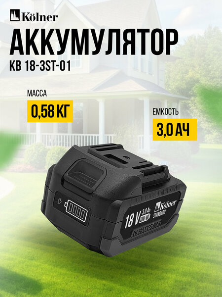 Аккумулятор Kolner KB 18-2ST-01 2.0Ач - надежный источник энергии для вашего инструмента. Тип аккумулятора: 18V UNI-M STANDARD. Универсальный аккумулятор Kolner совместим с инструментами и стационарными зарядками на платформе 18В/20В c аналогичной посадкой. А также аккумуляторы Kolner заряжаются любой штекерной зарядкой от инструментов 18В/20В. Индикатор заряда позволяет контролировать уровень энергии, упрочненный корпус обеспечивает долговечность. Защита от перегрева, короткого замыкания и перезаряда гарантирует безопасность использования. Этот долговечный аккумулятор для электроинструментов и садовых инструментов Kolner станет вашим идеальным помощником в работе!