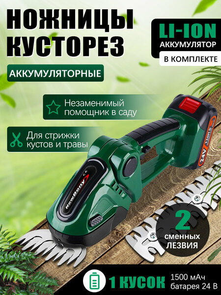 Аккумуляторные ножницы для стрижки травы с двумя лезвиями и емкостью аккумулятора 15 Ач