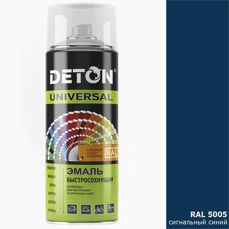 Акриловая эмаль DETON быстросохнущая, аэрозоль 520 мл предназначена для покраски предварительно загрунтованных изделий из металла, дерева, камня, бетона, картона и пластика. Благодаря составу, продукт обладает отличной адгезией и высокой укрывистостью. Применяется для внутренних и наружных работ. Образует долговечное покрытие стойкое к атмосферным воздействиям и механическим повреждениям. Насыщенный цвет обеспечивает отличный результат ремонтных, декоративных и дизайнерских работ. Оптимальное давление газа-вытеснителя и поворотное сопло распылительной головки позволяет производить покраску также как профессиональным краскопультом, гарантирует равномерное нанесение и исключает подтеки.