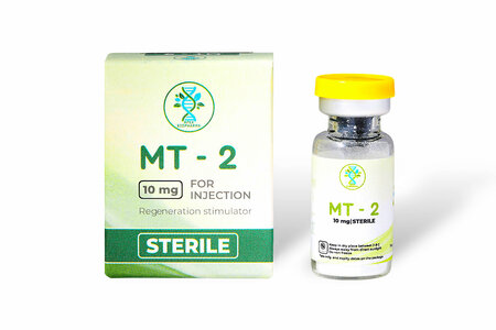 MT-2 (Melanotan II) — это циклический пептид, созданный в качестве аналога α-меланоцитстимулирующего гормона (α-MSH), обладающего выраженным стимулирующим действием на выработку меланина в коже. Основное предназначение MT-2 — быстрое и стойкое затемнение кожи (загар) без необходимости длительно находиться на солнце. Кроме того, препарат изучается как средство для коррекции эректильной дисфункции и снижения аппетита.