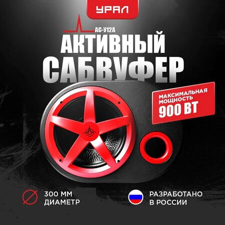 Активный автомобильный сабвуфер Урал АС-У12А (AS-D12. A RED HURRICANE), 900 Вт, 93 дБ, 20-250 ГЦ