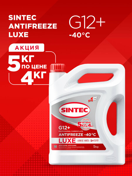 Акция! 5 кг по цене 4 кг SINTEC LUXE G12+ -40 карбоксилатный антифриз 5кг для двигателя автомобиля, охлаждающая жидкость синтек в авто, красный, готовый к применению