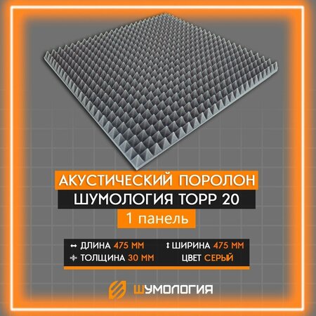 Акустический поролон предназначается для звукопоглощения и применяется для снижения реверберации помещений. Панель Шумология Topp имеет пирамидальную форму. Размер пирамиды указывает ее ширину, длину и высоту. Плюс добавляется толщина основания в 10мм. Таким образом Обща я толщина материала на 10мм больше, чем размер пирамиды. Размер 475 на 475 мм, позволяет рассчитать и приобрести ровно необходимое количество материала, не платя за излишки, а большой цветовой выбор реализовать Вашу самую смелую дизайнерскую фантазию. Шумология Topp прекрасно уберёт эхо в помещении, просто добавьте столько панелей на стену, сколько будет необходимо для решения Вашей задачи по снижению эха и реверберации. Собирайте красивые панно, фантазируйте, кайфуйте в Вашем помещении. Реверберация — эффект создаётся, когда какой либо звук звучит в замкнутом пространстве, в результате чего отражения от поверхностей стен вызывают большое количество эхо, затем звук медленно затухает по причине поглощения звуковых волн стенами и воздухом. Эффект наиболее заметен, когда источник звука перестаёт звучать, но отражения всё ещё звучат, амплитуда отражений постепенно затухает, пока они не перестают быть слышны. Длительность затухания отражений называется временем реверберации. Размер листа составляет 475х475х30 мм