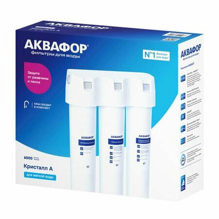 Надежный сорбционный фильтр для базовой очистки питьевой воды. Обеспечит глубокую очистку водопроводной воды от целого спектра опасных загрязнений, подходит для мягкой воды. АКВАФОР Кристалл удаляет хлор, тяжелые металлы, пестициды, нефтепродукты и другие распространенные токсины и аллергены, сохраняя минеральный состав воды. Три модуля изготовлены по технологии карбонблок с ионообменным волокном Aqualen, поэтому площадь контакта воды с сорбентами в десятки раз больше, чем у стандартных насыпных модулей, а скорость фильтрации в 4 раза выше. Сорбент также содержит безопасное серебро в отличие от серебрёного активированного угля.
