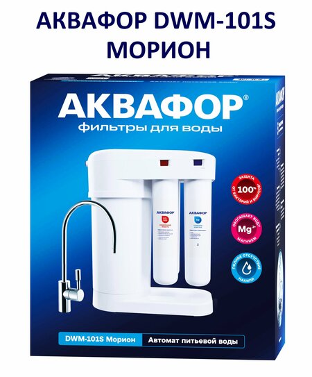 Мини-завод питьевой воды для большой семьи. Абсолютная безопасность для людей с аллергиями, чувствительным пищеварением и новорожденных. Обратноосмотическая система DWM-101S Морион полностью устраняет жесткость - причину накипи и любые примеси из водопроводной воды, включая бактерии, паразитов и вирусы. Компактнее и экономичнее классического обратноосмотического фильтра. Экономит до 9 тонн воды в год Инновационный водоводяной бак экономит до 9 тонн воды в год относительно классических обратноосмотических систем с водовоздушным баком. Он намного компактнее обычного, поэтому Морион занимает в 2 раза меньше места под мойкой, чем стандартная обратноосмотическая система. Скорость набора воды у Мориона в 2 раза выше, чем у классического обратноосмотического фильтра. Оптимальная минерализация Mg и Ca Минерализация очищенной воды возвращает ей привычный вкус и помогает в профилактике сердечно-сосудистых заболеваний. Мягкая вода - основа яркого вкуса блюд Чистый чайник, вкусные блюда и напитки - все это заслуга воды умеренной минерализации. Морион полностью и на весь срок службы мембраны избавит от накипи и белых хлопьев в воде. Эффективен при низком давлении без электронасоса Морион работает даже при низком давлении в водопроводе: от 2 атмосфер. Классические системы требуют не менее 3,5 атм. Дополнительный насос и подключение к электросети не требуется. Легкая и безопасная замена модулей по клику Замена модулей займет 1 минуту и не потребует инструментов, контакт с содержимым модуля полностью исключен. Обновляйте модуль предочистки раз в 6 месяцев и мембрану раз в 1,5 года.