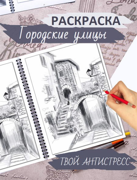 Раскраска антистресс для рисования по эскизу – это творческий блокнот скетч, альбом формата А4, 48 страниц плотной бумаги с обложкой из жесткого картона. В альбоме вы найдете 20 рисунков городских улиц и достопримечательностей со всего мира, выполненные различной техникой и набросков к ним. На вступительных страницах узнаете основы теории, найдете пояснение к каждому рисунку, какие карандаши и технику использовать, чтобы добиться того или иного эффекта. Очень здорово и необычно наблюдать в процессе раскрашивания за тем, как картинка начинает оживать, ведь, не смотря на предоставление абриса (контур рисунка), штрихи, сделанные вашей рукой, уникальны. Рисуйте и наслаждайтесь процессом! Наш скетчбук поможет проявить вам свои творческие способности, уйти от ежедневной рутины, восстановить душевное равновесие, снять стресс после трудового дня. Это прекрасное хобби для подростков, девушек, женщин и даже мужчин, отличный способ отвлечь детей от гаджетов. Подходит как для тех, кто впервые взял в руки карандаш, так и продвинутым художникам. Дает начальную теория и много практики. Удобный для рисования формат А4, для первых художественных шагов, начинающих талантов. Его можно взять с собой в путешествие, поможет скоротать время в пути, составит компанию в парке или кафе. Изображения различной тематики и сложности на любой вкус, можно раскрашивать чернографитными и цветными карандашами, линерами, фломастерами или маркерами, любыми красками (гуашь, акварель, акрил), а также шариковыми, гелевыми и капиллярными ручками. Гладкая фактура бумаги, с едва ощутимой текстурой обеспечивает плавное скольжение по листу. Переплет на пружину прочно скрепляет блок и позволяет легко переворачивать страницы. Упаковка в коробку из толстого гофрокартона обеспечит надежное хранение и доставку альбома в целости и сохранности. Мы постоянно расширяем свою коллекцию. В ассортименте нашего магазина также представлены наборы, которые включают чернографитные карандаши, ластик и точилку, чтобы сразу приступить к рисованию. Выберете понравившуюся тематику или закажите несколько для себя и в подарок. Каждый полюбит эту интересную книгу, найдет себе рисунки по душе, если получит ее в подарок. Порадуйте близких, коллег, друзей - сделайте им качественный подарок. Альбом раскраска антистресс - это недорогой и оригинальный подарок на любой праздник. Подходит для любого возраста, рекомендуется для детей с 7 лет.