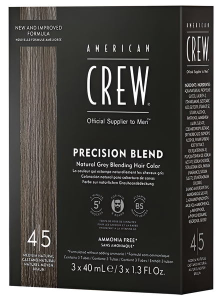American Crew Precision Blend - это краска-камуфляж для седых волос, разработанная специально для мужчин. Она позволяет скрыть седину всего за 5 минут, благодаря своей уникальной формуле. Краска имеет приятную кремообразную текстуру, что делает ее простой и удобной в использовании. Цвет держится до 6 недель, обеспечивая долгосрочный результат. Одной упаковки хватает на 6 окрашиваний. В комплект входит 3 тюбика по 40 мл, каждый из которых содержит средний натуральный оттенок 4/5. Это нейтральный натуральный оттенок, который позволяет добиться естественного русого тона волос без нежелательной рыжей пигментации. Средство не содержит аммиака и резорцина, что делает его безопасным для волос и кожи головы. В состав краски входят активные ингредиенты, такие как витамин B5, пантенол и бетаин, которые обеспечивают защиту во время окрашивания и ухаживают за волосами. American Crew Precision Blend - это надежное и эффективное решение для мужчин, которые хотят скрыть седину и сохранить здоровье своих волос.