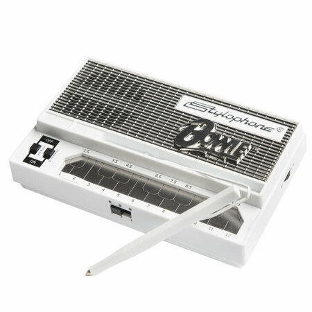 аналоговый синтезатор стилофон, лимитированный дизайн в стиле Дэвида Боуи, 3 позиции тона, вибрато, стилус, встроенный динамик, работает от 3 батареек АА