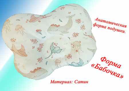 Анатомическая подушка для новорожденных Рыбки. Материал сатин. Размер 25*30