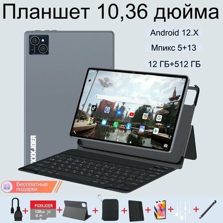 Планшетный компьютер поддерживает 5G LTE и может использовать две SIM-карты. Вы можете использовать 5G-LTE даже там, где нет Wi-Fi. Он также поддерживает 2,4 / 5G Wi-Fi, что обеспечивает стабильное беспроводное соединение. Планшет оснащён 12 ГБ встроенной оперативной памяти и 512 ГБ ПЗУ. Также есть возможность использовать карту microSD для увеличения объёма памяти до 128 ГБ. Гарантия на планшет — 12 месяцев. Мы решим ваши проблемы с послепродажным обслуживанием максимально быстро и качественно, чтобы у вас не было забот. **Технические характеристики:** * экран: 10,36-дюймовый IPS-дисплей с разрешением 1920х1080 пикселей; * камеры: фронтальная камера 5 Мп, задняя камера 13 Мп; * процессор: Mediatek x30; * аккумулятор: ёмкостью 7000 мАч; * ОС: Android 12. описание: Аксессуары: планшет — 1 шт, карта MicroSD 128GB — 1 шт, Bluetooth-клавиатура — 1 шт, защитный чехол для планшета — 1 шт, рюкзак для планшета — 1 шт, защитное стекло — 1 шт, стилус — 1 шт, OTG-кабель — 1 шт, наушники — 1 шт, инструмент для извлечения SIM-карты — 1 шт, USB-кабель — 1 шт, адаптер питания — 1 шт, инструкция по эксплуатации — 1 шт.