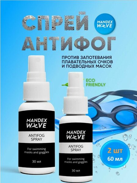 Средство от запотевания очков для плавания разработано таким образом, чтобы учесть все недостатки современных антифог - средств для плавания и глубоководного погружения. Если вы занимаетесь профессиональным плаванием в бассейне и на открытой воде Антифог MANDEX WAVE станет незаменимым помощником для достижения спортивных результатов. Антифог эффекта от однократной обработки очков хватает до двух марафонских заплывов. Спрей для очков для плавания просто и удобно наноситься на поверхность линз. Необходимости протирать и сушить очки после обработки нет. Спортсмен после обработки максимально быстро готов к заплыву. Антизапотеватель для очков подходит для всех водных видов спорта, в том числе триатлон. Защита от запотевания плавательных очков после обработки сохраняется на несколько тренировок! Линзы не запотевает даже в условиях высокой влажности.