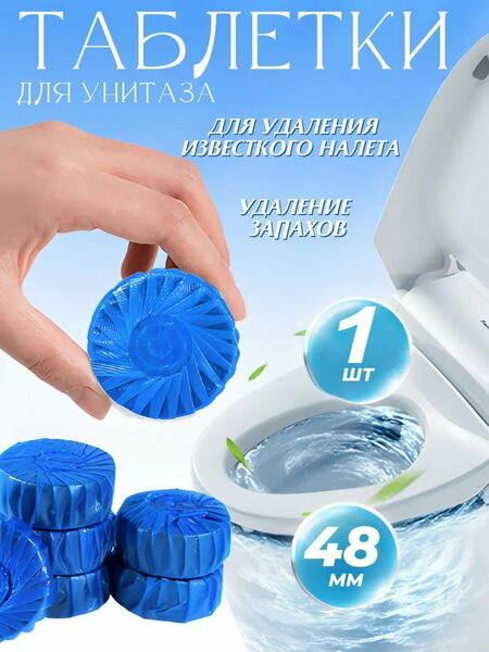 Антиизвестковые таблетки для унитаза в сливной бачок, до 50 смываний синий, 1 шт.