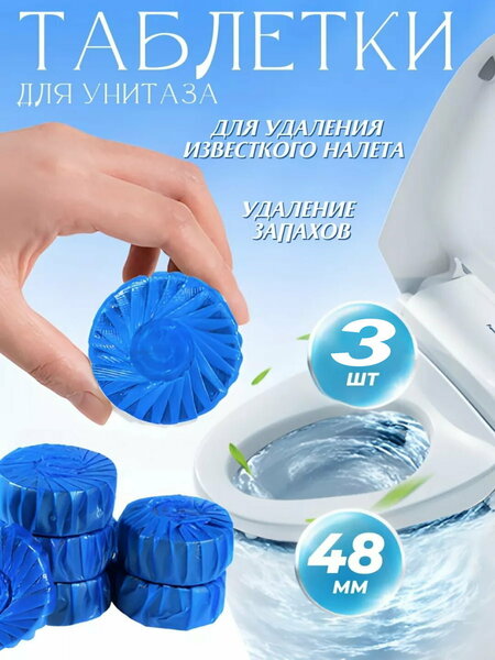 Антиизвестковые таблетки для унитаза в сливной бачок, до 50 смываний синий, 3 шт.