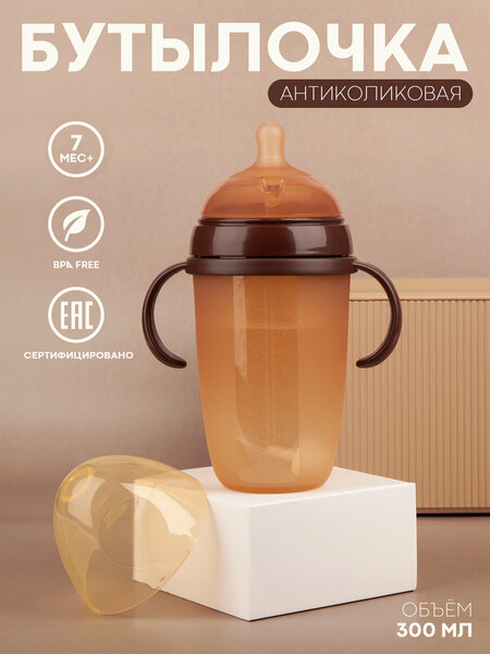 Эта детская бутылочка для кормления поможет вам кормить или докармливать малыша смесью. Благодаря соске анатомичной формы малыш не почувствует большой разницы между грудью и бутылочкой: а значит, не стоит переживать, что такое докармливание поставит крест на грудном вскармливании. Соска сделана из силикона: она мягкая и атравматичная, не вызывает аллергии и быстро нагревается до приятной малышу температуры. Поильник оснащён антиколиковой системой и механизмом непроливайки: благодаря отрицательному давлению в бутылочке малыш не захлебнёт воздух, а жидкость перестанет литься, как только он прекратит сосать. Благодаря антигравитационному грузику малыш может пить в любом положении: и сидя, и лёжа. Стенки у поильника мягкие: эта особенность не только помогает малышу анатомично пить, но и делает поильник более антивандальным и менее шумным. Такая бутылочка не разобьётся при падении, не оставит синяков, если малыш уронит её на вас, и с меньшей вероятностью разобьёт что-то в доме. Ручки у бутылки с выпуклостями анатомичной формы: ребёнку будет удобно держать в руках. При желании ручки снимаются в одно движение, не меняя при этом эстетики бутылочки. Благодаря широкому горлышку поильника - 66 мм в диаметре - вам не придётся для мытья возиться с ёршиками для бутылок. Сбоку нанесены риски: приготовьте смесь или налейте молоко, точно отмерив количество, а после сможете увидеть, сколько съел ребёнок. В комплект входит и крышка: берите с собой бутылочку, не боясь запачкать соску. Изготовлен поильник из трёх видов материалов: силикона, полипропилена и PPSU. Все эти материалы сертифицированы и не содержат BPA, их можно использовать в детской посуде. Рекомендуем стерилизовать при температуре не выше 100 градусов: это максимальная температура для ручек и крышки. Бутылочки подойдут даже для новорождённых: в таком случае рекомендуем брать самый маленький объём в 150 мл. Поэтому они станут не просто выгодным приобретением, но удачной идеей для подарка на выписку или первый месяц.