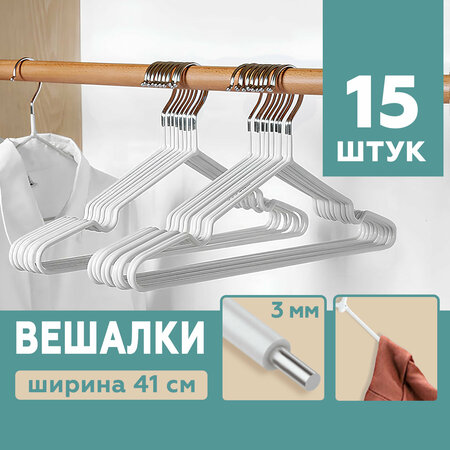 Антискользящие вешалки плечики для одежды взрослые, набор 15 шт, белые
