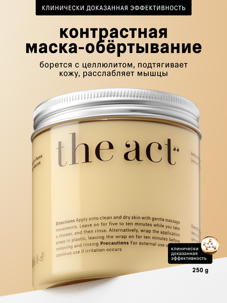 Маска-обёртывание обладает более активной проникающей способностью, чем базовые уходовые средства. Благодаря «парниковому эффекту» обёртывание работает не только на поверхности кожи, но затрагивает её более глубокие слои. Это помогает эффективнее бороться с излишней жидкостью в жировых клетках, которая провоцирует появление целлюлита. Маска усиливает лимфодренажный эффект от занятий спортом, ускоряет похудение, расслабляет мышцы. Маска-обёртывание комплексно работает с клетками кожи: улучшает и разглаживает рельеф и ускоряет метаболизм внутри клеток, помогая выводить токсины и шлаки и нормализуя водно-солевой баланс. Эфирные масла специй и камфора обладают моделирующим действием: после нанесения маска создаёт разогревающий эффект, который дополняется действием охлаждающих компонентов, активизирующихся после смывания. Такой «контрастный душ» ускоряет циркуляцию крови и лимфы, приводя кожу в тонус. Растительные экстракты увлажняют, питают, обновляют и смягчают, возвращают коже упругость и гладкость. Экстракт планктона защищает от ультрафиолета и окислительного стресса, оказывает антиоксидантное действие, улучшает микроциркуляцию. Моделирующая маска-обёртывание уменьшает бугристость и дряблость кожи. Стимулирующий состав выводит токсины, обновляет и тонизирует, улучшает циркуляции крови и лимфы, расслабляет мышцы, оказывая общий оздоровительный эффект. Кожа подтягивается и разглаживается, приобретает здоровый упругий тонус и ухоженный внешний вид, уменьшается эффект «апельсиновой корки», укрепляются стенки сосудов, уходит боль и усталость в мышцах. Нанесите маску на чистую и сухую кожу массажными движениями, оставьте на 5-10 минут, затем смойте тёплой водой. Для более интенсивного эффекта оберните место нанесения продукта плёнкой и оставьте на 10 минут, затем удалите плёнку и тщательно смойте тёплой водой. После использования тщательно промывайте руки, чтобы избежать попадания маски на слизистые. Рекомендован к применению с 14 лет. Размер упаковки 9х8х8