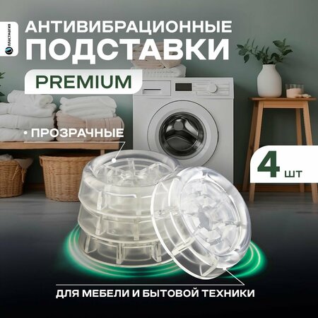 Антивибрационные подставки для стиральной машины - отличный способ продлить срок службы вашей бытовой техники и обеспечить себе комфортное пребывание дома во время работы устройств! Подставки под ножки значительно снижают уровень шума за счет поглощения вибрации, а также помогут исключить перемещение холодильника, сушильных и стиральных машин. Больше вы не будете слышать звуков отжима или вибраций морозилки! Противовибрационные подножки незаметны под техникой , что совсем не скажется на вашем комфорте. Даже если устройство размещено под раковиной или столешницей, это не помешает вам использовать антивибрационные подставки. Изделия прозрачные - они прекрасно впишутся в любой интерьер дома и не испортят квартирный дизайн. Устойчивы к внешним воздействиям. Подставки для кондиционера, сплит системы и стиралки не боятся воздействия влаги и бытовой химии, поэтому их спокойно можно размещать в ванной комнате, душе или на кухне. Термопластичный полимер аксессуаров очень прочный, хорошо выдерживает активное использование и механические воздействия. Материал экологичный, не портится и не желтеет со временем, а также способен выдерживать большой вес до 500 кг. Виброизоляторы можно использовать не только для техники, но и для мебели - они предотвратят скольжение кроватей, диванов и кресел. Разместить их можно в спальне, детской комнате, гостиной, на балконе или в кухонной зоне. Защита пола от повреждений. Напольная система виброизоляции увеличивает срок службы бытовых приборов. Это позволит вам намного реже приобретать детали для машинки и ремонтировать устройства, что поможет значительно сэкономить семейный бюджет. Виброопора плотно прилегает к поверхности и защищает пол от ударных нагрузок и царапин - ваше напольное покрытие останется в целости и сохранности даже после долгих лет эксплуатации приборов. Вибро опоры имеют отличное сцепление со всеми видами поверхностей: линолеумом, паркетом, ламинатом и плиткой. В наборе идет антивибрационные подставки под стиральную машину 4 штуки.